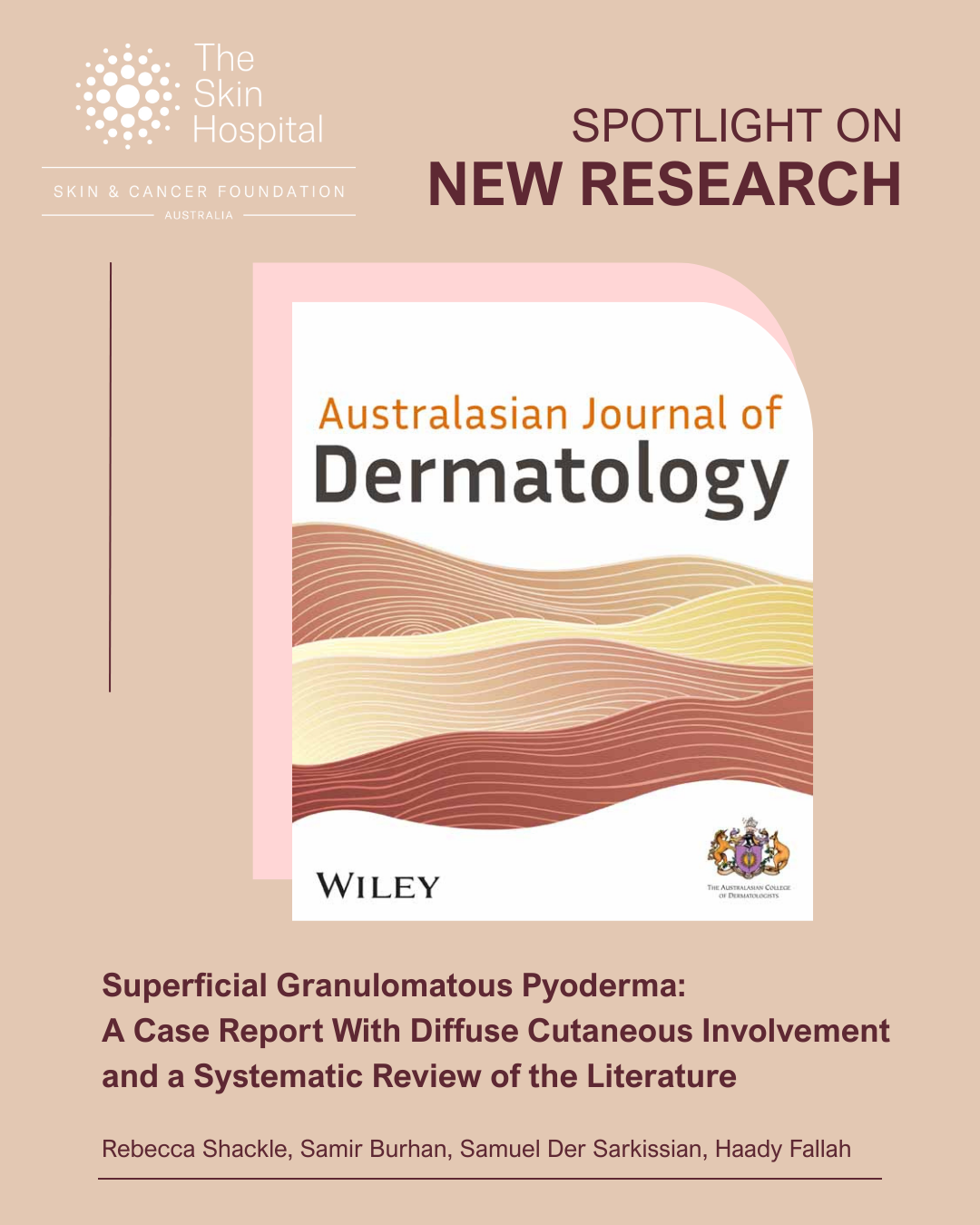 Congratulations to Rebecca Shackle, Samir Burhan, Samuel Der Sarkissian and Haady Fallah (Dermatologist at The Skin Hospital), for this important contribution that expands our understanding of this complex condition