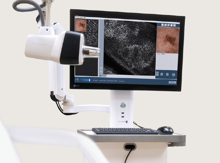 Reflectance confocal microscopy (RCM) is a non-invasive test that gives specialists a detailed view of skin cells, helping with diagnosis, treatment decisions, and monitoring.